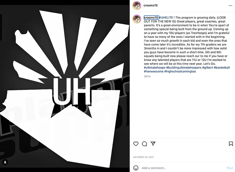 Coach Crooms officially rebrands the club from Tres Hoops to Uptempo Hoops Elite (UH Elite).