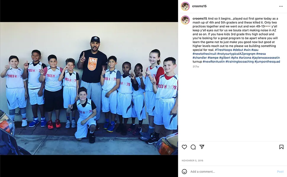Living in Tucson, Arizona, Coach Crooms launches Tres Hoops in Gilbert, making the 200 mile round-trip drive several times a week.