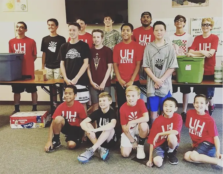 As part of our mission to build high character athletes on and off the court, boys from all teams within the club volunteer for a back-to-school backpack stuffing event to help give back to the local community.
